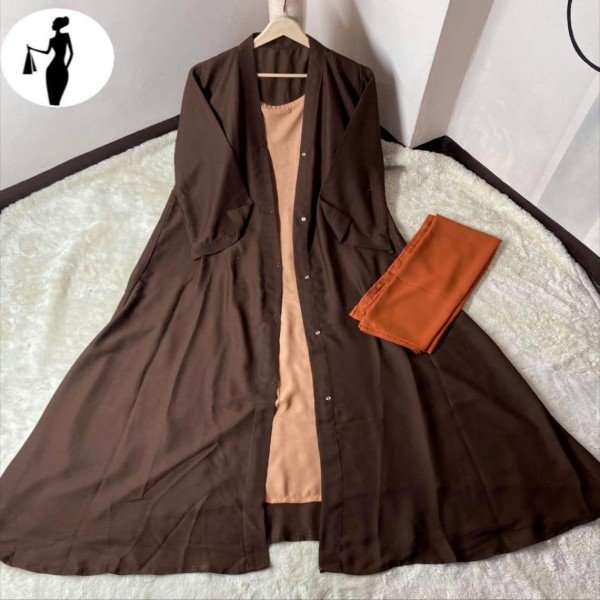 Crafted from premium China georgette fabric, this abaya is lightweight, breathable, and soft on the skin—perfect for Pakistan’s warm climate. The plain, minimalist design paired with a rich brown color gives it a timeless and sophisticated look that never goes out of style.