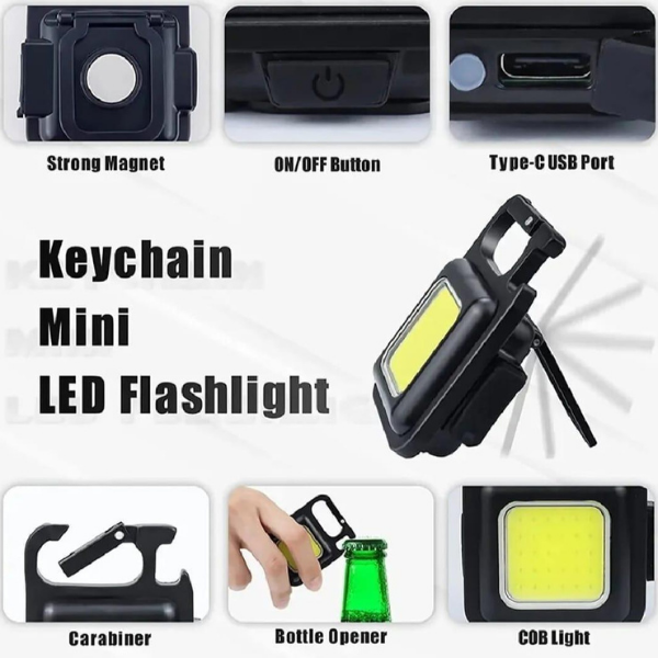 Rechargeable COB Mini Keychain Flashlight – Compact Portable LED Light