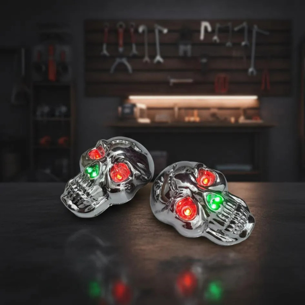 Upgrade your bike’s look with these bold Skull Shape Motorcycle LED Indicators. Designed with bright red eye LEDs and green nose LEDs